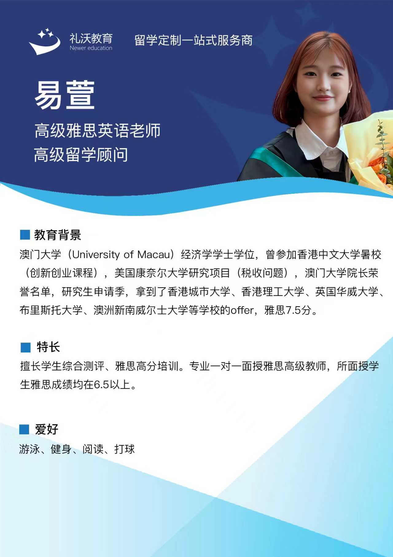 公司宗旨是发挥教育价值创造,专注于留学定制一站式服务,让学生在留学规划中找到未来更好的自己,《诚信、责任、共赢》是我们坚持不变的主题。